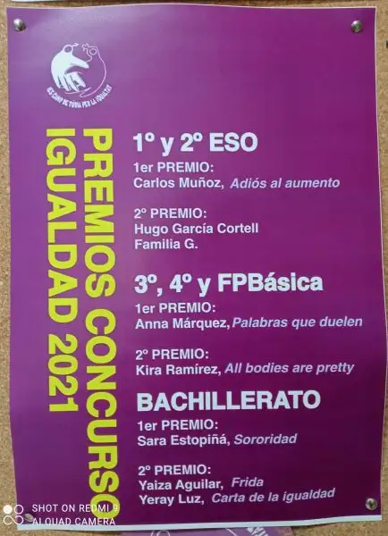 El 8 de març se celebra el Dia Internacional de la Dona i, per aquest motiu, convoquem en l’IES Camp de Túria el Concurs Artístic i Literari d’Igualtat. Enguany hem rebut molts cartells, còmics, vídeos i microrelats, tots d’una excel·lent qualitat!
