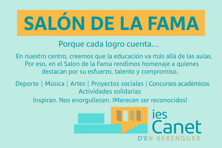En el nostre centre, creiem que l’educació va més enllà de les aules. Per això, en El Saló de la Fama retem homenatge a aquells alumnes i alumnes que destaquen pels seus assoliments extracurriculars, demostrant esforç, talent i compromís en diverses disciplines: des de l’esport, la música o les arts, fins a la participació en projectes socials, concursos acadèmics o activitats solidàries.