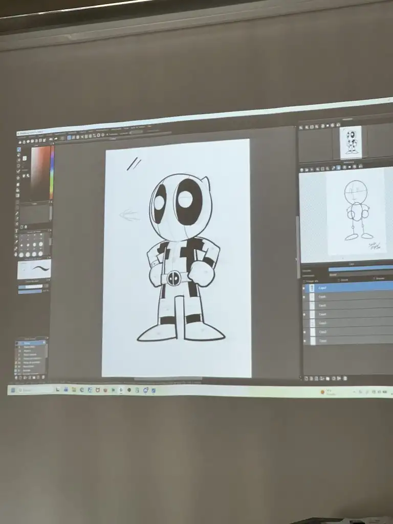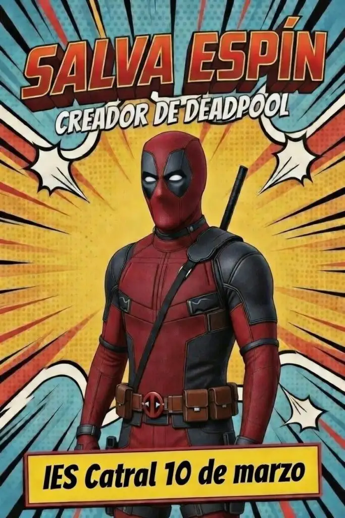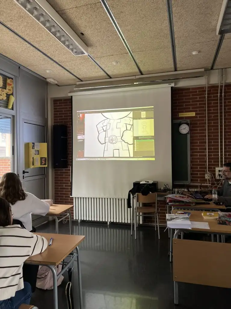 El pasado martes 10 de marzo, el alumnado de 2ºESO pudo disfrutar de la visita del ilustrador y diseñador de cómics Salva Espín, quien les habló de su trayectoria como estudiante hasta convertirse en dibujante de Marvel. Además, el alumnado participó en una masterclass en la que aprendieron a dibujar de forma proporcionada y técnica al personaje de Deadpool, y que les servirá a la hora de dibujar cualquier personaje de forma equilibrada.