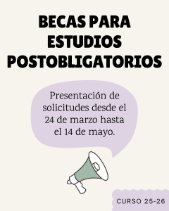Ya está disponible el trámite para solicitar la beca del Ministerio para estudios postobligatorios para el curso 25-26. Plazo de presentación de solicitudes: del 24 de marzo al 14 de mayo. Enlace para acceder al trámite telemático. https://www.educacionfpydeportes.gob.es/servicios-al-ciudadano/catalogo/general/05/050130/ficha/050130-2025.html#dc1 Beneficiarios: Podrán solicitar las becas de esta convocatoria los estudiantes que no superen una determinada renta y/o … Leer más - Masterclass ‘¡De la FP a donde te dé la gana!’