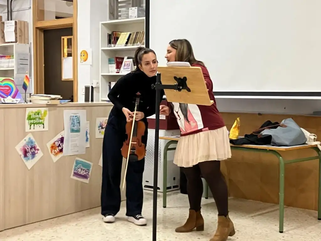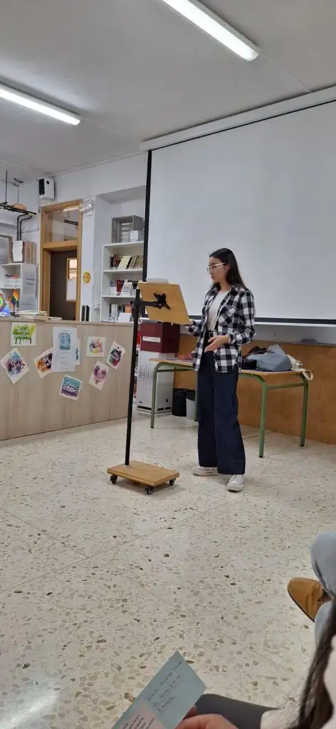 Sempre serà un orgull comptar amb alumnat amb interessos culturals que participe en aquestes iniciatives a l’institut, així com amb docents que les hi promoguen. Al Recital Poètic hem tingut l’avinentesa de delitar-nos no només amb la lectura de composicions poètiques en diverses llengües (llatí, valencià i castellà), sinó també amb l’acompanyament musical del violí, gràcies a Jessica de Valencià. D’afegitó, vam comptar amb la presència de l’escriptora Gràcia Jiménez Tirado, un referent en el gènere poètic, i amb les dramatitzacions de les actrius Laura Mora i Seli Pérez. Ambdues impregnaren la sala amb emocions intenses i embelliren encara més els textos amb les seues paraules.