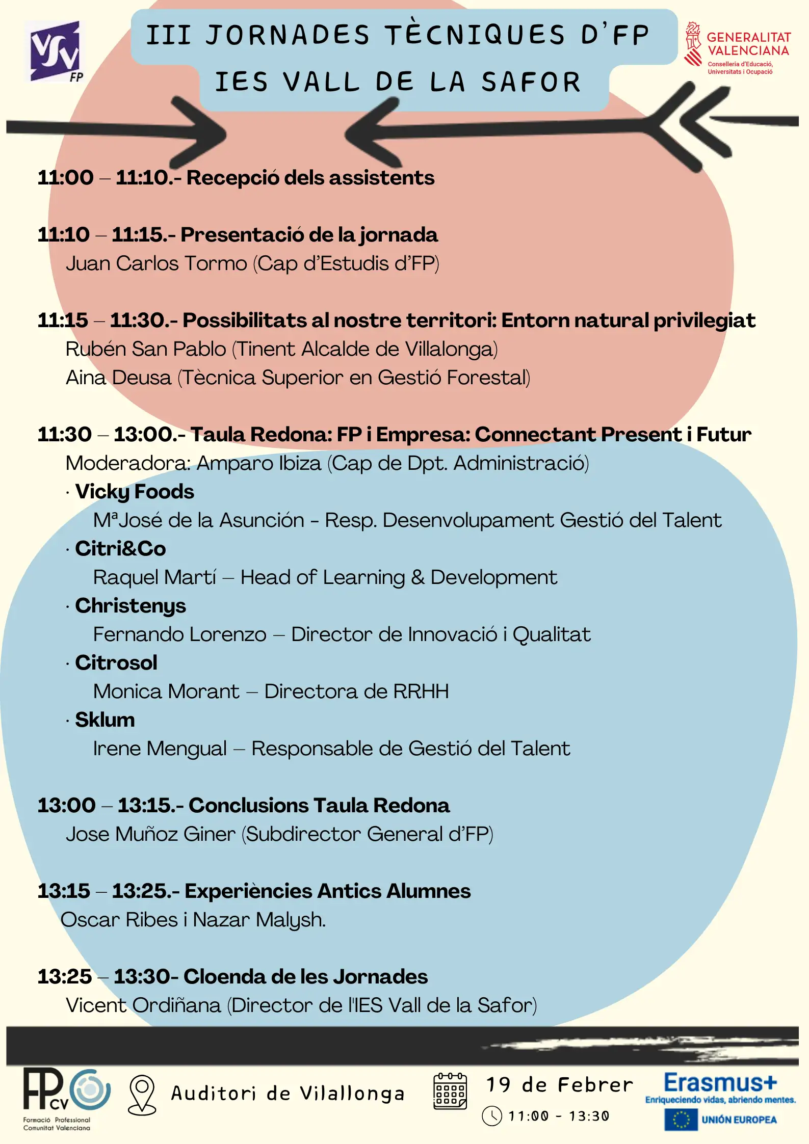 l’IES Vall de la Safor està organitzant les III Jornades Tècniques de Formació Professional, que tindran lloc el dijous 19 de febrer, de 11.00 a 13.30 h, a l’Auditori de Vilallonga.