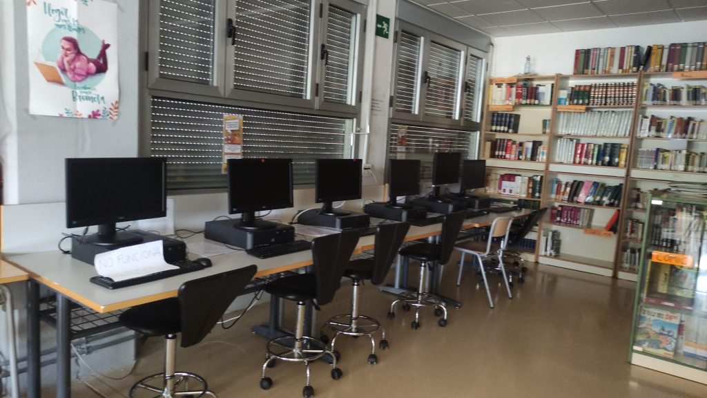 La biblioteca es troba a la primera planta del centre, al corredor que connecta l’ala B amb l’ala A. Inclou una gran quantitat d’obres literàries dividides segons el seu gènere i temàtica. A més a més, compta amb sis ordinadors amb connexió a Internet a disposició de tot l’alumnat, així com amb un nou espai de lectura on llegir còmodament.