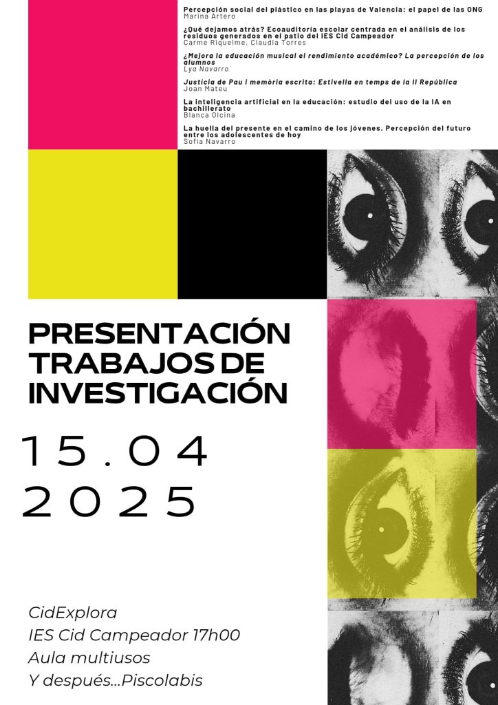 El Martes 15 d’Abril presentarem els treballs d’investigació dels alumnes del programa CidExplora.
