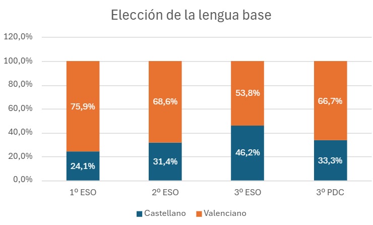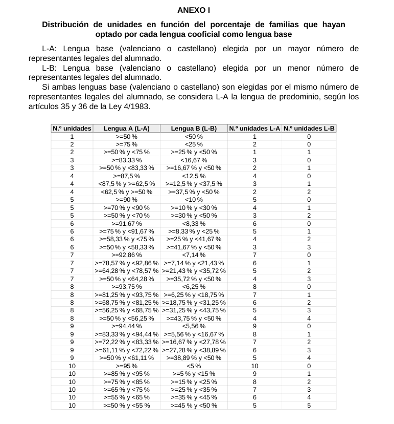 Datos de la consulta de la sobre la lengua base en porcentajes y datos absolutos. Adjuntamos anexo legal para su interpretación.