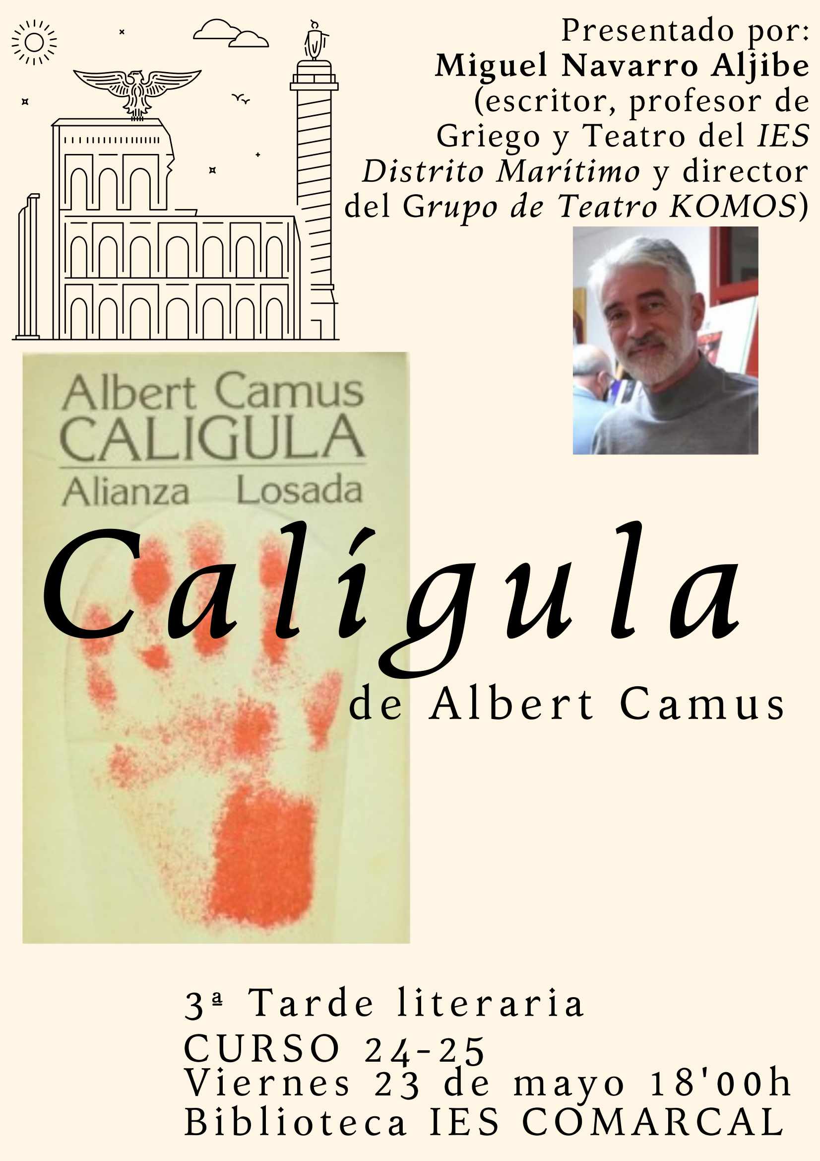 Contaremos con la presencia del escritor, profesor y director de teatro Miguel Navarro Aljibe.