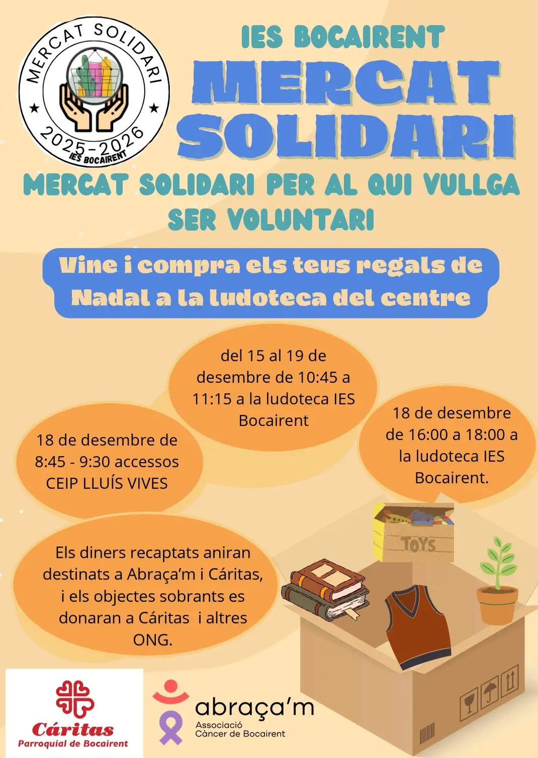L’alumnat de FPB de Serveis Administratius ha dut a terme un projecte solidari amb l’objectiu de fomentar la solidaritat i la responsabilitat social, amb el lema “MERCAT SOLIDARI PER A QUI VULLGA SER VOLUNTARI”.El projecte ha consistit en la recollida de roba, llibres, joguets i altres objectes aportats per la població, la seua classificació i … Read more