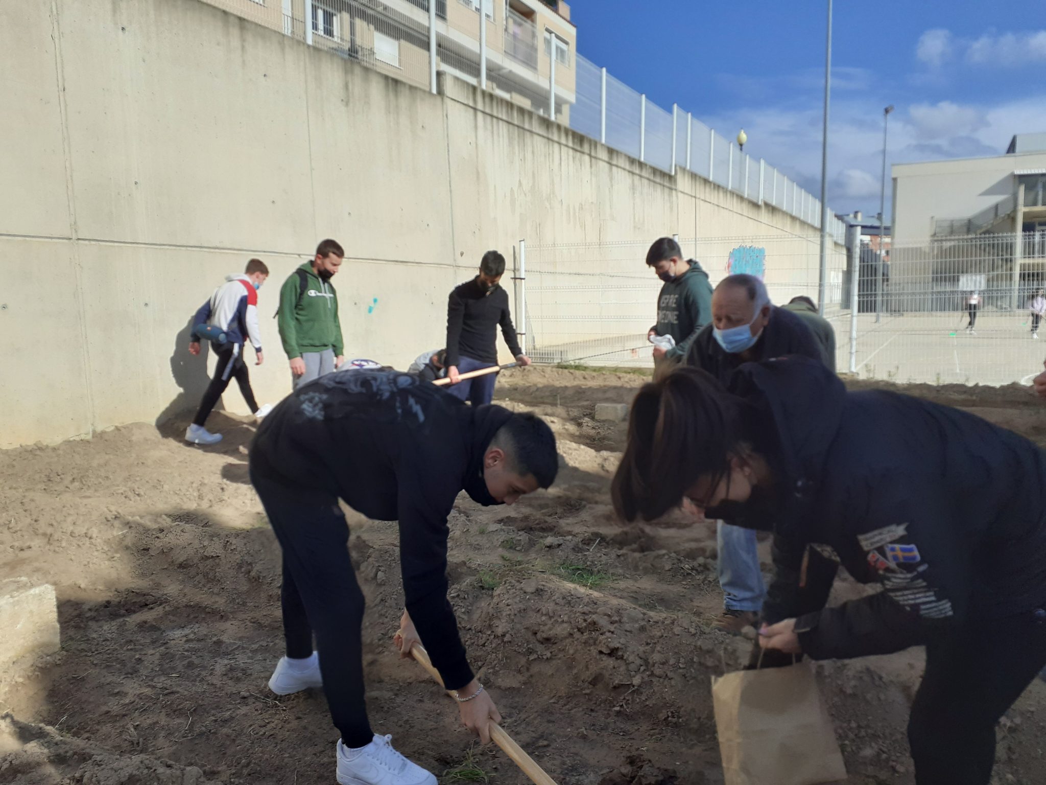 L’alumnat del cicle FP de Serveis Administratius Bàsics han estat plantant hortalisses a l’hort amb la inestimable ajuda de Miguel Beneyto Blasco, que ja l’any passat va estar orientant-los i ensenyant-los a cuidar l’hort: quan cal plantar, regar, etc.