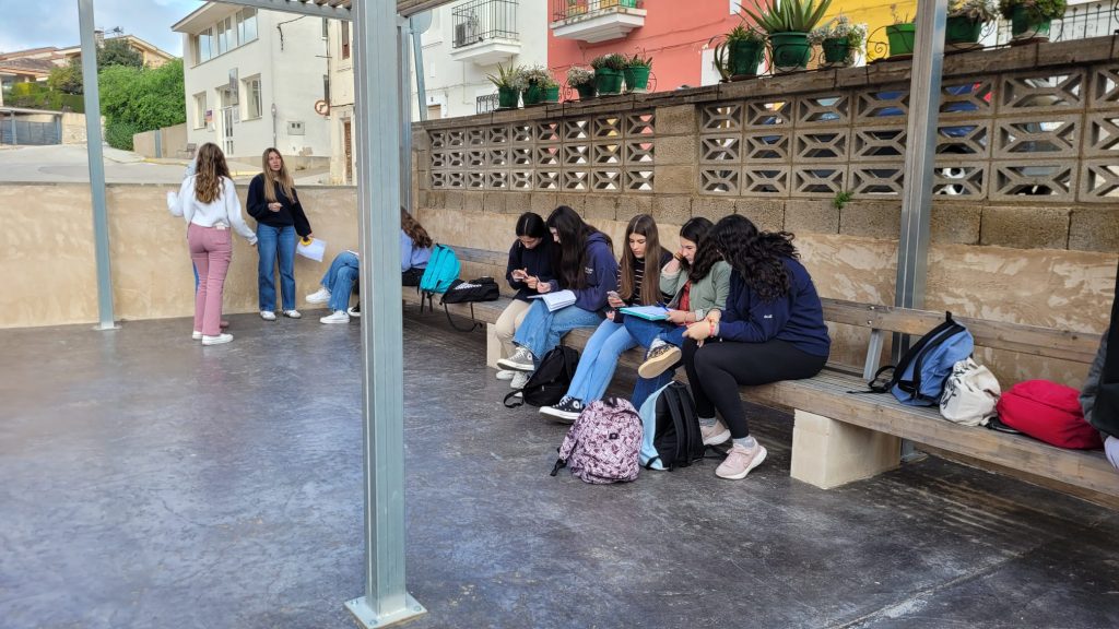 La ruta va començar al pati de l’institut, on es van fer càlculs sobre l’altura de les faroles, la capacitat de les graderies de la pista de futbet, … . Després, al parc del carrer 2 de Maig, els i les alumnes van fer una cerca activa de figures geomètriques presents en el mobiliari urbà i en l’entorn natural.