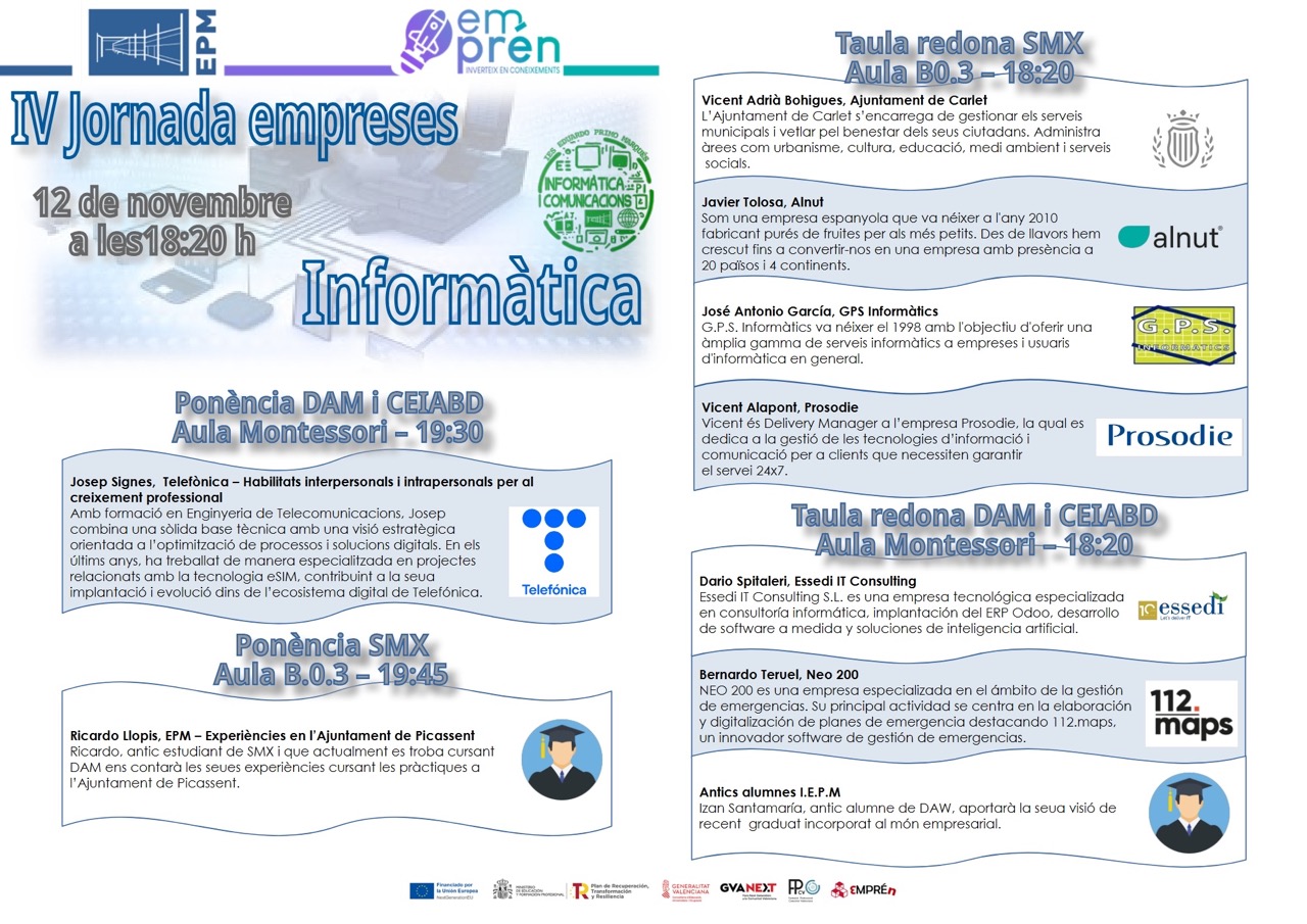 El 12 de novembre celebrarem la Jornada empreses a l’institut, aquestes són les activitats que realitzarem: