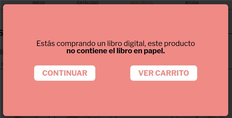 Una vez seleccionado, ha de “añadir al carrito” tal como se puede ver en la imagen del libro digital de 2º que te indico como ejemplo. Emergerá una ventana que le indicará el siguiente mensaje: