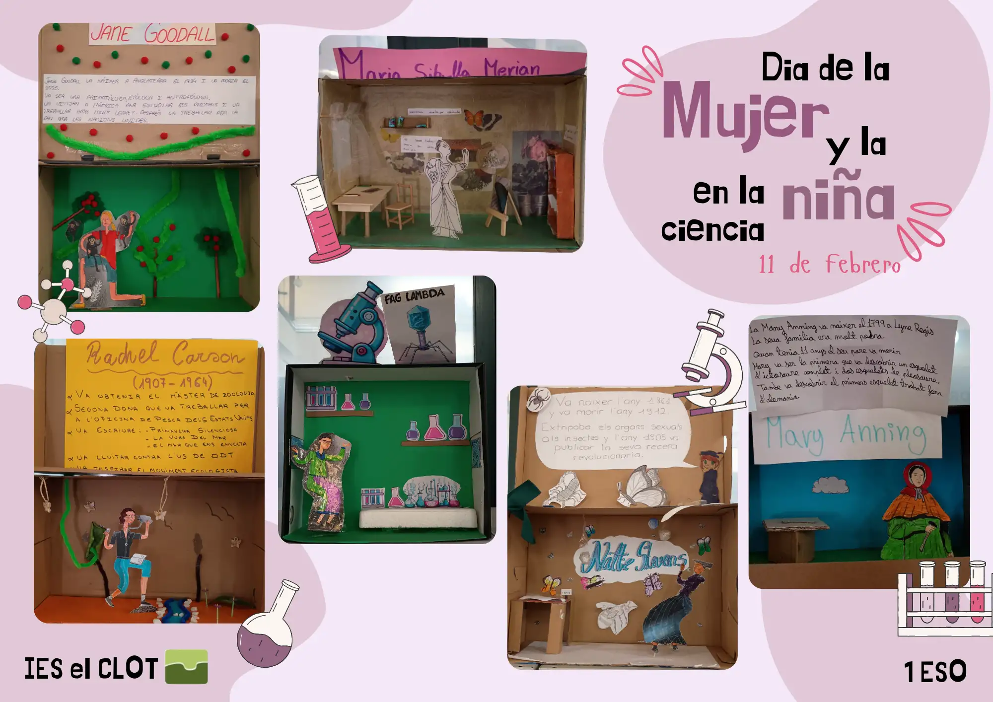 • Laboratorios en 3D: Los alumnos de 1º ESO han realizado laboratorios a escala en 3D a partir de la información que se les proporcionó sobre la vida de mujeres científicas famosas. Estos laboratorios los han realizado usando materiales reciclados, como cajas de zapatos, tapones de plástico…