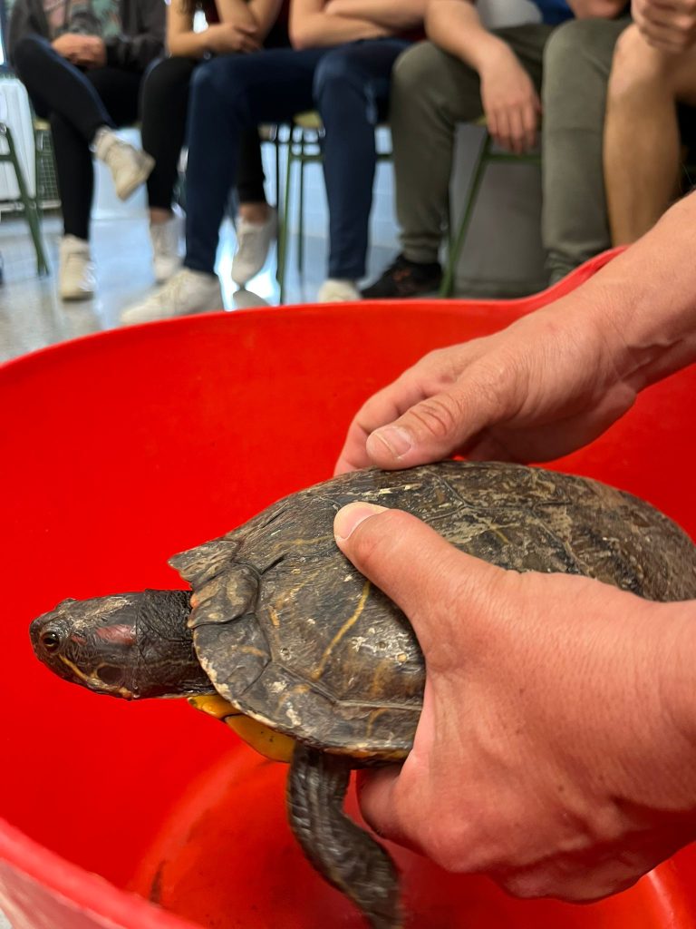 LES TORTUGUES DEL PRAT: L’alumnat de 1r d’ESO i 1r de batxillerat científic va participar en una xerrada/taller sobre tortugues (marines, terrestres i d’aigua dolça) de la mà de Sonia Monferrer de Global Nature.