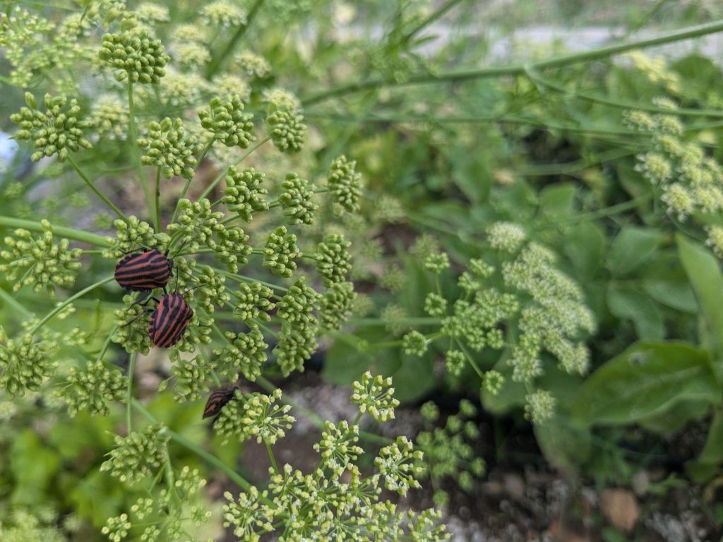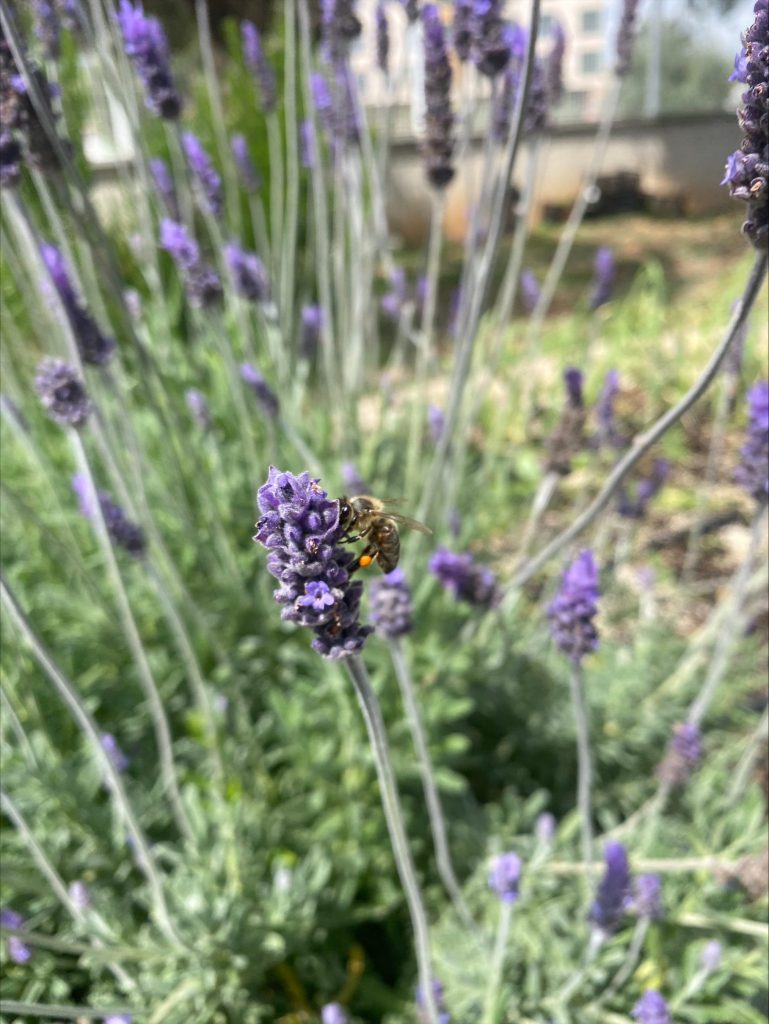 POL·LINITZADORS i altres insectes: En una petita zona del pati l’IES El Prat hi ha una illa de biodiversitat urbana. Durant l’abril treballar o visitar l’hort és tot un espectacle d’olors i colors. Les plantes aromàtiques estan totes florides i els pol·linitzadors estan a totes hores presents.