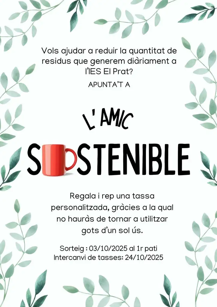 Aquest curs hem continuat amb una acció que vam iniciar el curs passat i que ens va agradar molt. Aquesta és l’amic sostenible i consisteix en un intercanvi de tasses amb un altre company o companya del claustre.