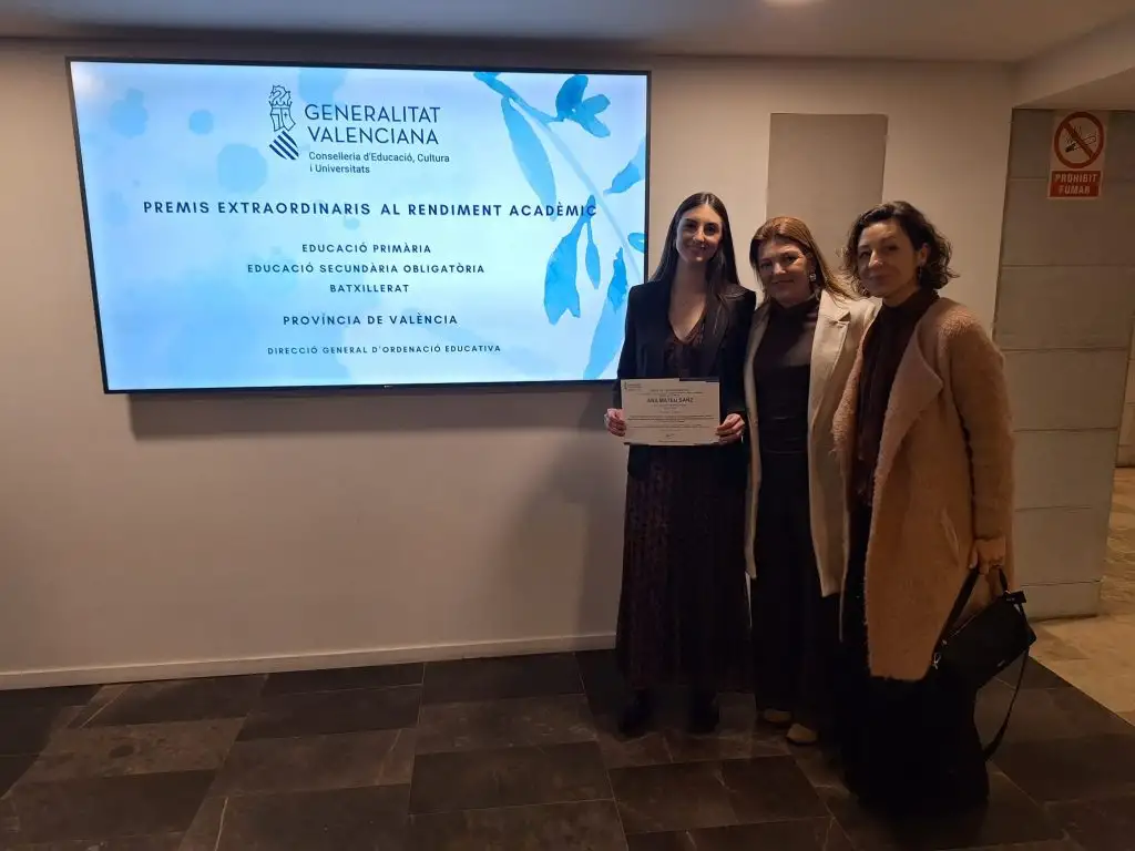 En las fotografías que acompañan esta noticia, Ana Mateu Sanz aparece junto a su tutora, Lorena Victoria, y la jefa de estudios del centro, Beatriz Granero, quienes quisieron acompañarla en este momento tan especial.