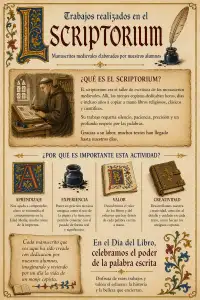 Los alumnos de 2º ESO han convertido el aula de Geografía e historia en su propio scriptorium. En las imágenes se puede ver el resultado de algunos de los trabajos y en la infografía se puede conocer un poco mejor en qué consiste y la importancia de realizar esta actividad y cómo la rescatamos para … Leer más
