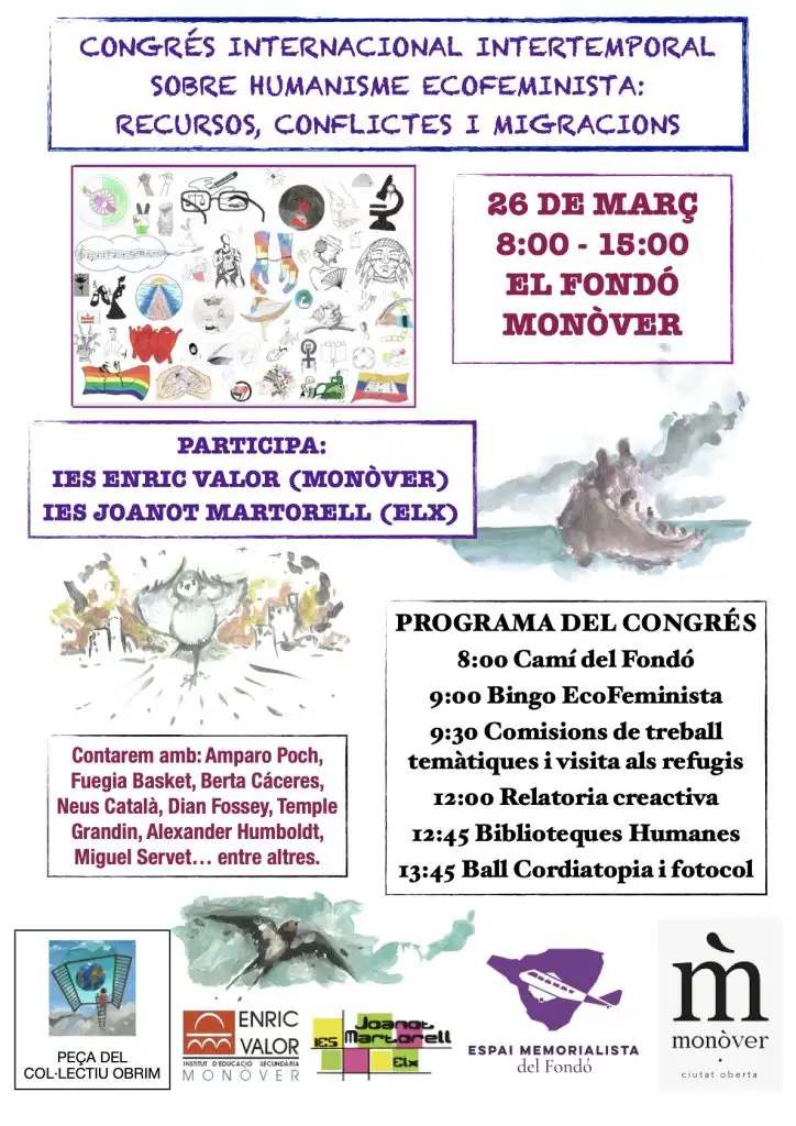El jueves 26 de marzo, estudiantes y docentes del IES Joanot Martorell (Elx) y del IES Enric Valor (Monòver) participarán en un juego de simulación que tendrá lugar en el Espacio Memorialista del Fondó. Se trata de ponerse en la piel de personajes históricos y actuales para investigar sobre las causas de los conflictos y de lo que conocemos como “crisis migratoria”. En el IES Enric Valor se trabaja desde el departamento de Biología y los personajes también están vinculados al contexto científico. Filosofía será el departamento que acompañe al alumnado del IES Joanot Martorell con personajes diversos asociados a la lucha por los derechos, la dignidad y la libertad de la humanidad. La simulación se realizará en el Espacio Memorial de El Fondó gracias a la colaboración del Ayuntamiento de Monóvar. Además, habrá una espacio en el programa para la celebración de un encuentro con bibliotecas humanas, al que han sido invitadas diversas asociaciones que acompañarán al alumnado en un debate actual que combate el discurso del odio de las redes sociales. En el contexto de crisis ecosocial en que nos encontramos, este trabajo aspira a un triple objetivo, entender cómo hemos llegado hasta aquí; vislumbrar alternativas que nos permitan dar respuesta a los retos ante los que nos encontramos en el siglo XXI; y, especialmente, desactivar discursos que azuzan el miedo y la incertidumbre amenazando con arrastrarnos de nuevo a los abismos de la intolerancia y el fascismo. El Colectiu Obrim acompaña y coordina por segunda vez esta situación de aprendizaje, que ya fue reconocida en 2019 con el Premio Nacional de Educación para el Desarrollo Vicente Ferrer de la AECID y el MEFP.