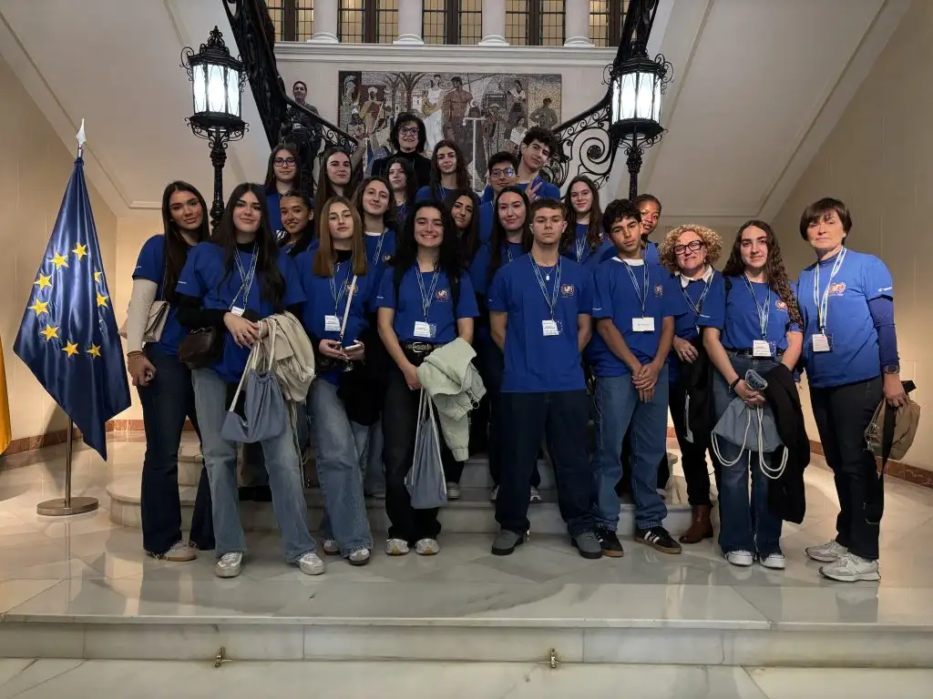 El pasado martes 10 de febrero las 6 Escuelas Embajadoras de Parlamento Europeo de la provincia de Alicante, Colegio Diocesano San Juan Bautista de Alicante, de los IES Severo Ochoa y Sixto Marcho de Elche, del IES La Mola de Novelda y de dos centros de Orihuela: el Colegio Diocesano Oratorio Festivo San Miguel y el IES Gabriel Miró nos reunimos para fomentar y difundir los valores de la Unión Europea por nuestros alumnos embajadores. El encuentro se desarrolló en dos entornos. En primer lugar la Diputación de Alicante nos acogió en su sede, con el diputado provincial Jose Antonio Bermejo Castelló al frente del acto. Dos alumnos de cada centro tomaron la palabra para hablar sobre diferentes aspectos del impacto que supuso la entrada de España en la entonces Comunidad Europeo, hoy Unión Europea, hecho del que celebramos este año su 40 aniversario. Después nos dirijimos al expectacular espacio de Casa Mediterraneo, bañada con la luz azul del Mediterraneo, donde nos recibió el secretario general del espacio, Jose Manuel Molina y Ruth Merino, la secretaria autonómica de Representación ante la UE. La actividad ha consistido en un taller sobre el 40 aniversario de la adhesión, con murales elaborados por alumnos de diferentes centros (mezclados entre ellos) sobre qué les inspira la efeméride y el futuro de las instituciones continentales.