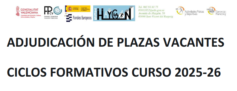 6 DE OCTUBRE – ADJUDICACIÓN FASE II DE PLAZAS VACANTES DE CICLOS 2025-26