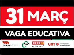 El próximo martes, 31 de marzo de 2026, los sindicatos STEPV, CSIF, CCOO y UGT convocan una huelga educativa dirigida al personal docente de los centros educativos, como reivindicación de mejoras en las condiciones laborales, las cuales repercuten también en la atención al alumnado.