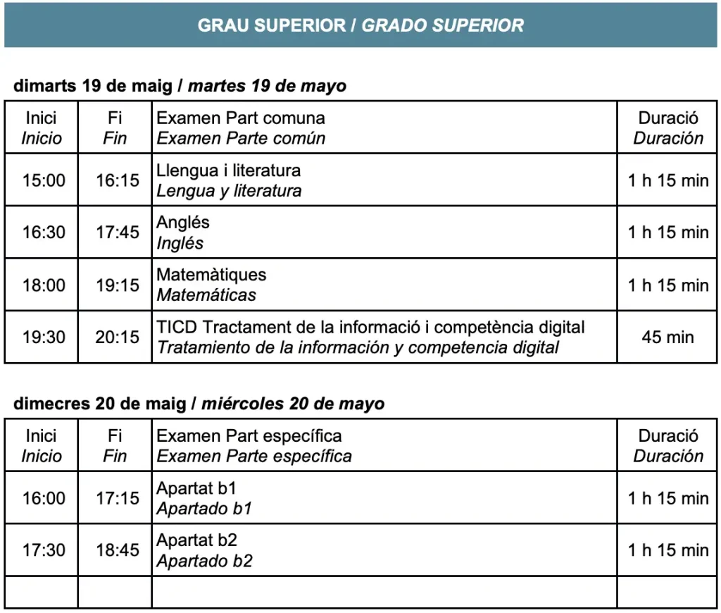 – REQUISITOS PARA LA PRUEBA DE ACCESO A GRADO SUPERIOR: Tener cumplimientos 19 años o cumplirlos durante el año en curso y no reunir los requisitos académicos de acceso en un ciclo de grado superior.