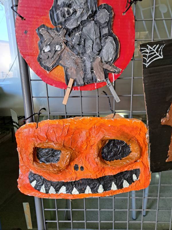 Els grups de 1r i 2n d’ESO han elaborat les carabasses i elements decoratius que formen les guirnaldes de l’exposició.