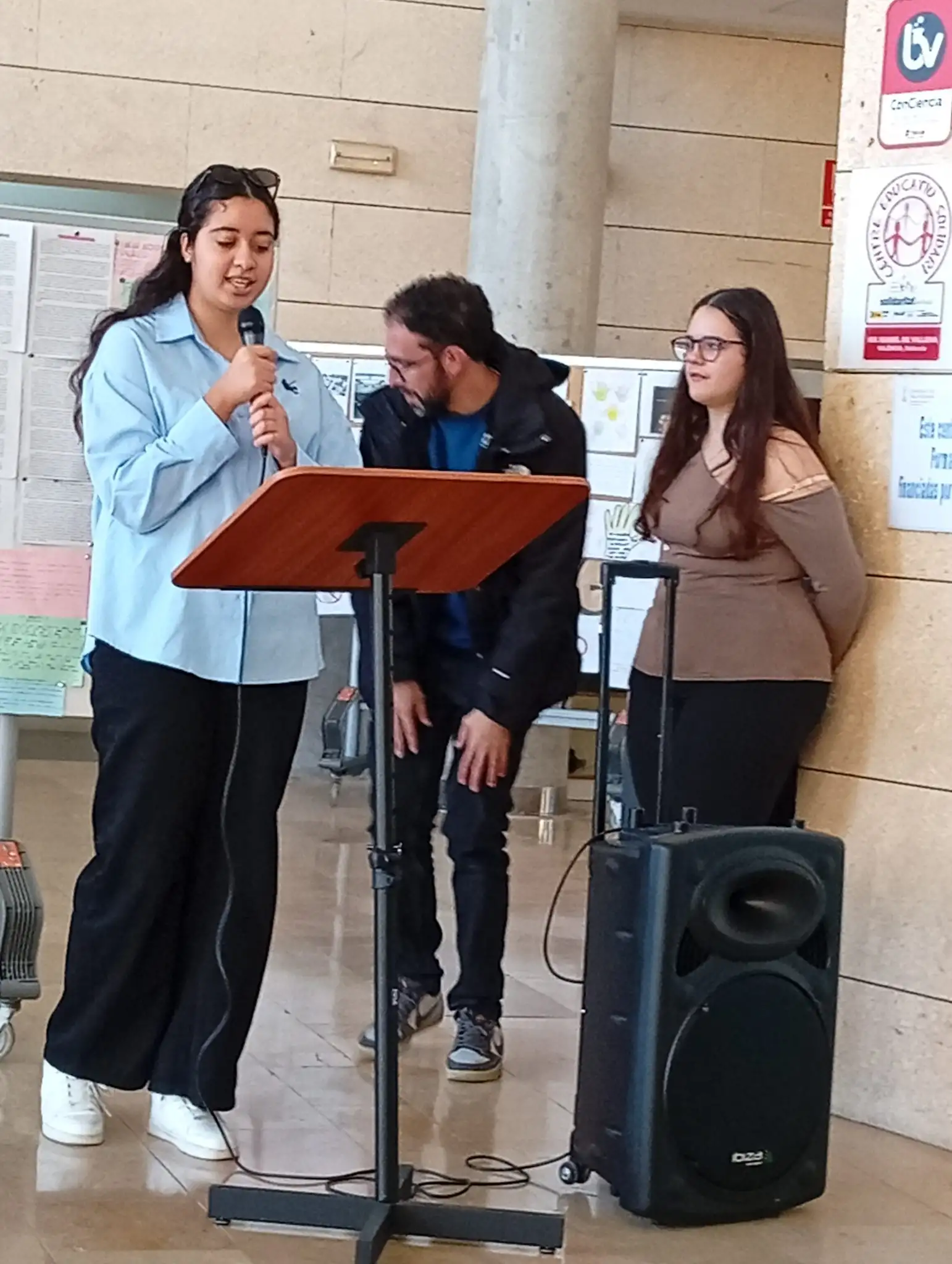 Por otro lado, al hall, en la hora del patio, el profesor de plástica Joan, entregó varios premios a alumnado de 3rESO y, además, por parte del departamento de valenciano y la profesora Marian, tuvo lugar la representación sobre personajes del barrio del marítimo: La Pilona, Eduard Escalante, Benlliure, Amparo Guillén, Maria Cambrils, además de mencionar el origen de los barrios de la zona: Grao, Canyamelar, Cabañal, Malvarrosa…