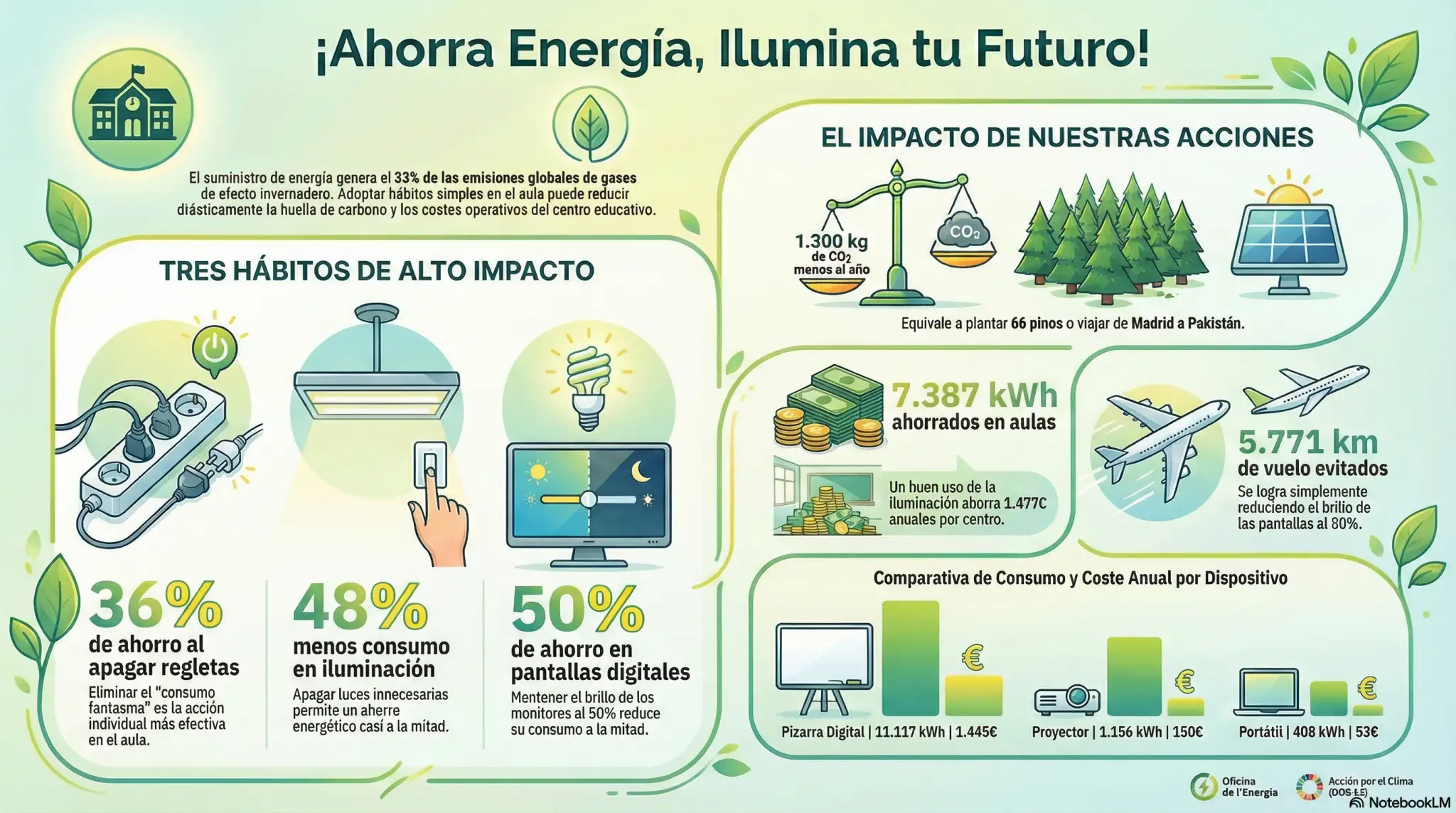 “Colaborar para juntos ahorrar” muestra que pequeñas medidas (apagar correctamente equipos, usar regletas, reducir brillo y optimizar iluminación) pueden traducirse en un ahorro relevante de energía y emisiones. La continuidad del proyecto se refuerza mediante el concurso de salvapantallas, que mantendrá el mensaje presente en el día a día del centro y ampliará la participación de toda la comunidad educativa.