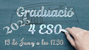 El pròxim divendres 13 de Juny tindrà lloc la cerimònia de graduació del nostre alumnat de 4ºESO. Esta es portarà a terme en el pati del centre a partir de les 17h 30′. Enhorabona a tot l’alumnat pel seu esforç i constància per poder arribar a esta cita tan important