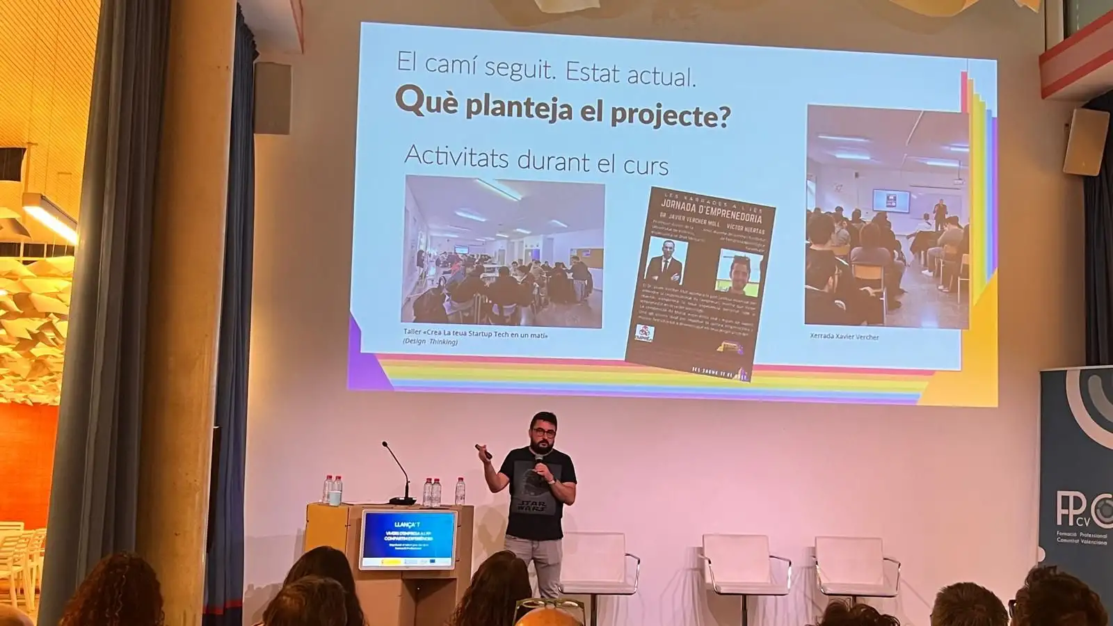 El passat divendres, 17 d’abril, vam participar a les Jornades Llança’t: Vivers d’empreses a la FP. Compartim Experiències, organitzades per la Direcció General de FP, on vam conéixer de primera mà diverses experiències d’emprenedoria portades a terme tant a altres comunitats, com Canàries, com a la nostra pròpia, amb els diversos vivers d’empreses promoguts pel projecte Llança’t.