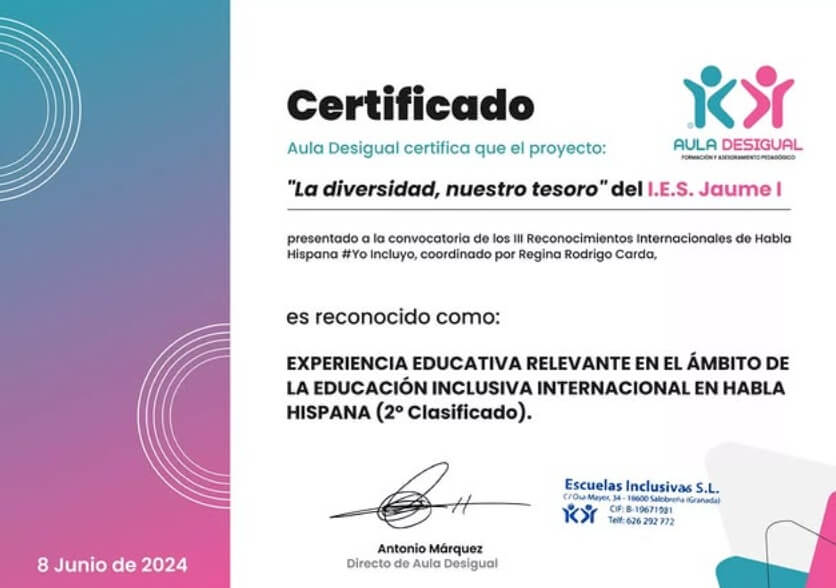 2n Premi en els III Reconeixements internacionals de parla hispana Yo Incluyo pel nostre projecte La diversitat, el nostre tresor (2024)