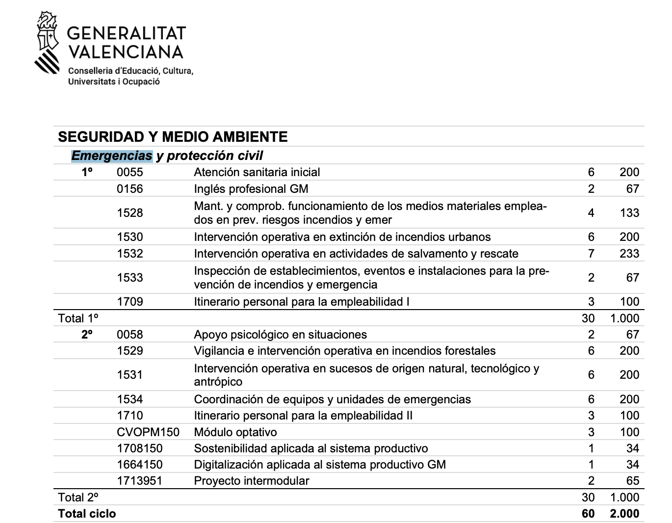 La carga lectiva es de 30 h semanales distribuidas en diferentes módulos profesionales.