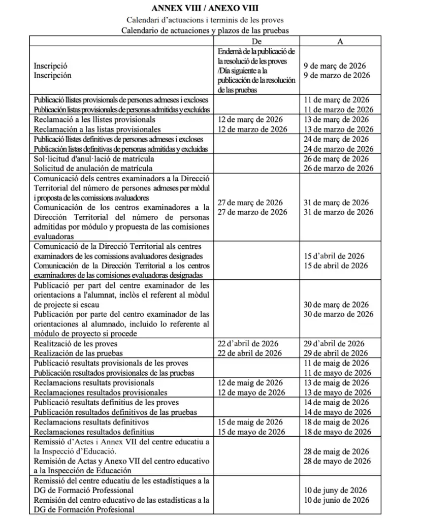 Pruebas para la obtención de los títulos de técnico o técnica y de técnico o técnica superiores de Formación Profesional en el año 2026