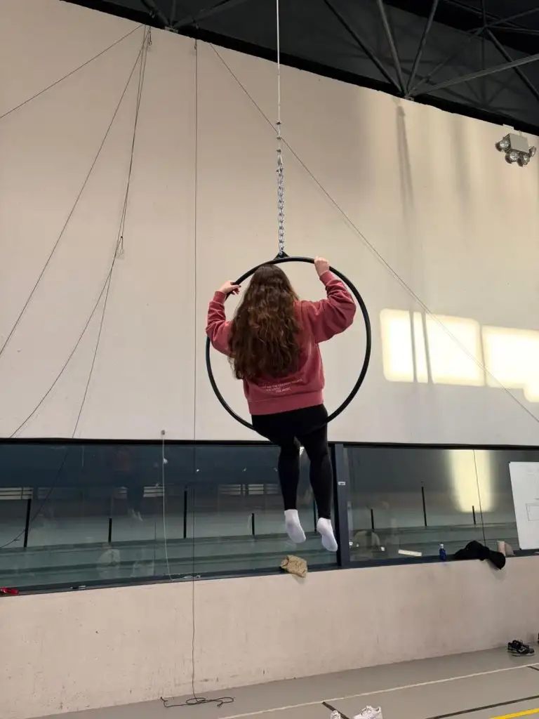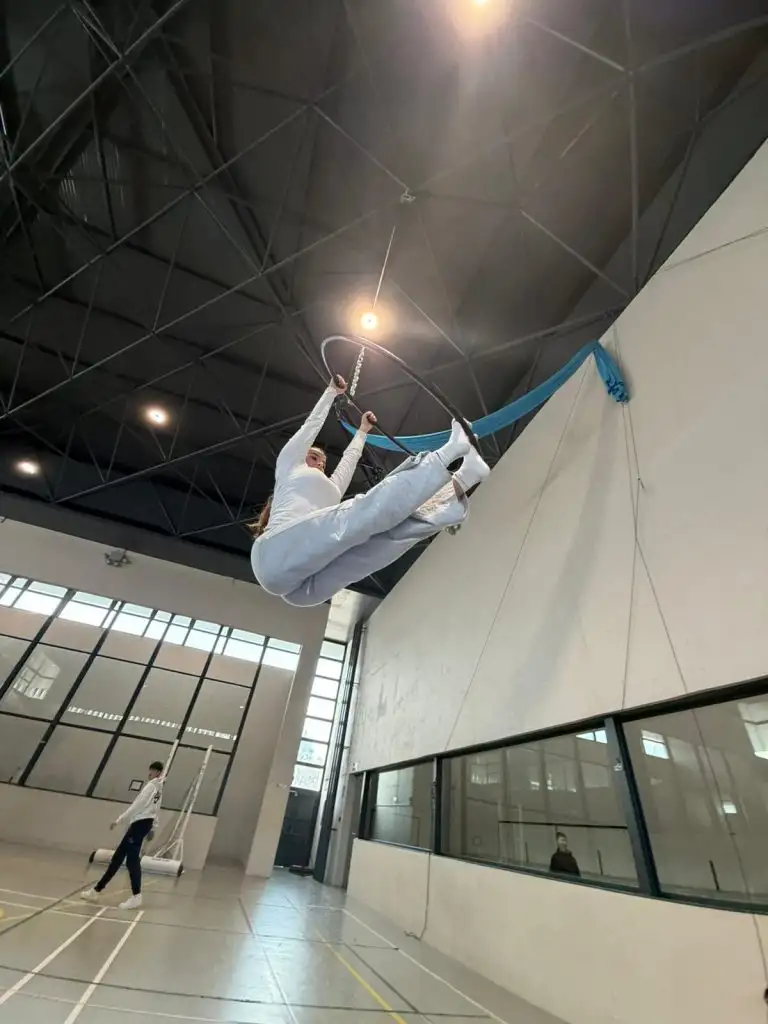 Las telas aéreas (también llamadas aerial silks) son una disciplina artística y deportiva que forma parte del circo contemporáneo. Consiste en realizar figuras, subidas, caídas controladas y secuencias coreografiadas utilizando dos telas largas colgadas del techo o una estructura elevada. Se combinan fuerza, flexibilidad, coordinación y expresión corporal.