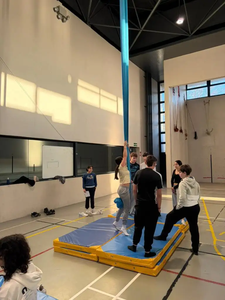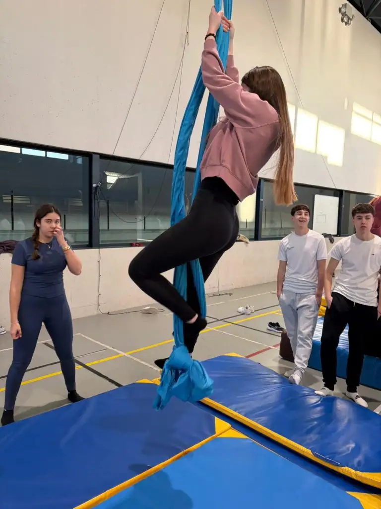 El departamento de educación física se han comenzado a trabajar con alumnado de bachillerato el trabajo en las telas elásticas. Os dejamos algunas fotos: