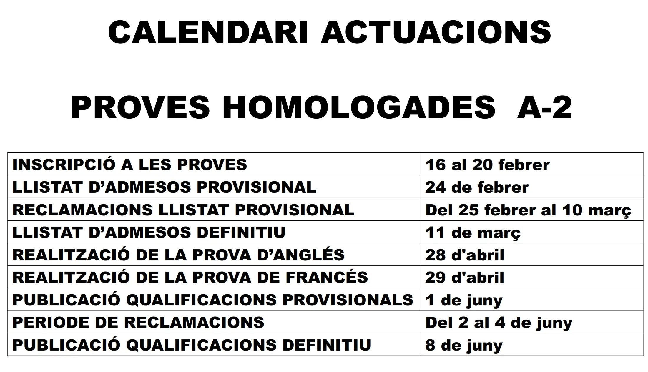 PROVES PER A L’OBTENCIÓ DEL CERTIFICAT DE NIVELL BÀSIC (A2) D’ANGLÈS I FRANCÈS. CONVOCATÒRIA 2026