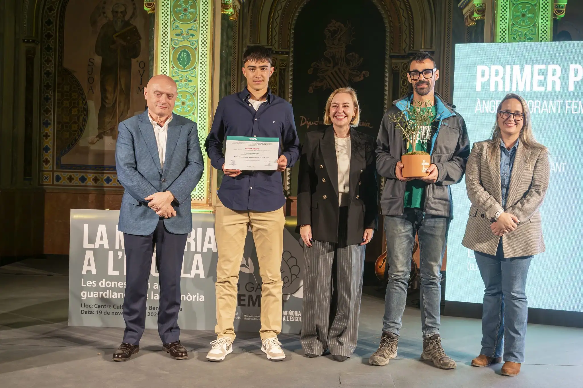 Amb aquestes paraules, el nostre alumne Miquel Català Morant, va agrair el primer premi de la sisena edició de Memòria a l’Escola, un reconeixement concedit pel seu projecte Àngela Morant Femenía: memòries latents en veu de dona, centrat en la recuperació del testimoniatge de la seua àvia, en un acte de lliurament celebrat al Centre Cultural La Beneficència de València.