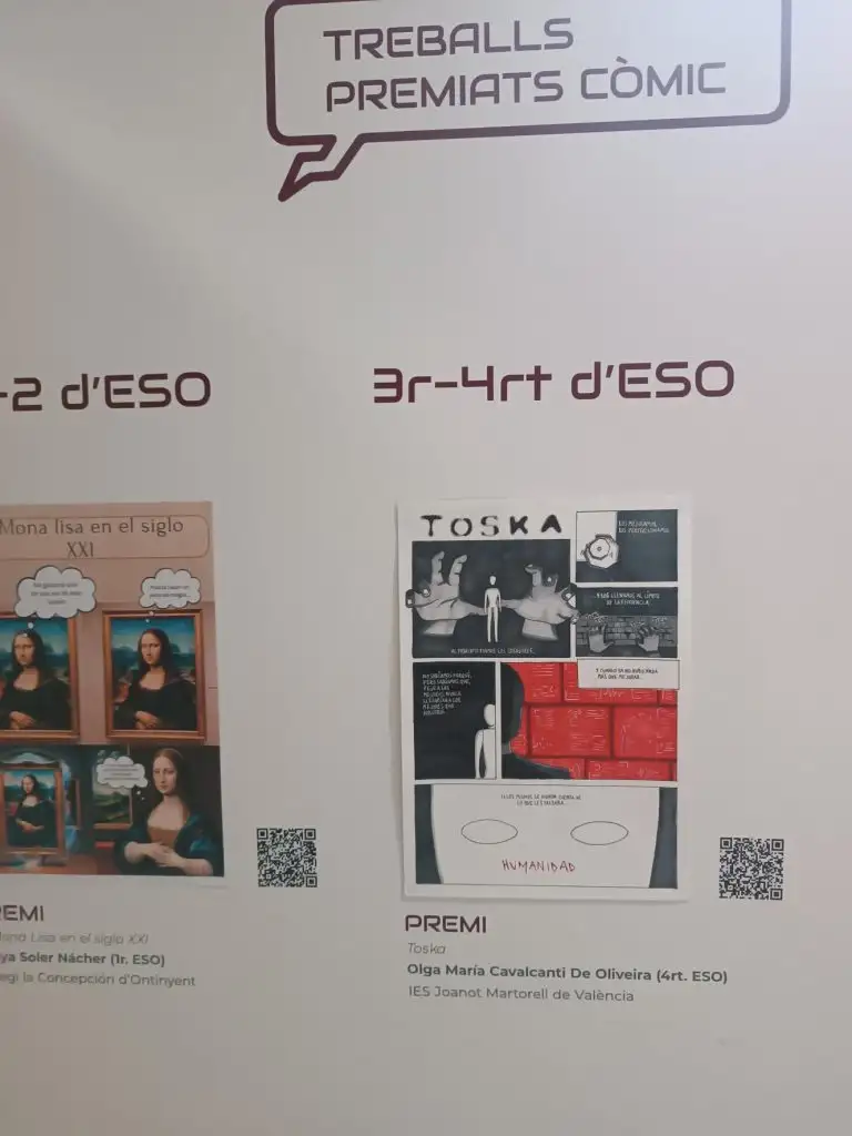 Primer premio del concurso de cómico "El futuro con la IA" de 3° *y 4° de ESO convocado por el Consell Valencià de Cultura por nuestra alumna Olga Olga Cavalcanti De Oliveira de 4°B. ¡Enhorabuena!