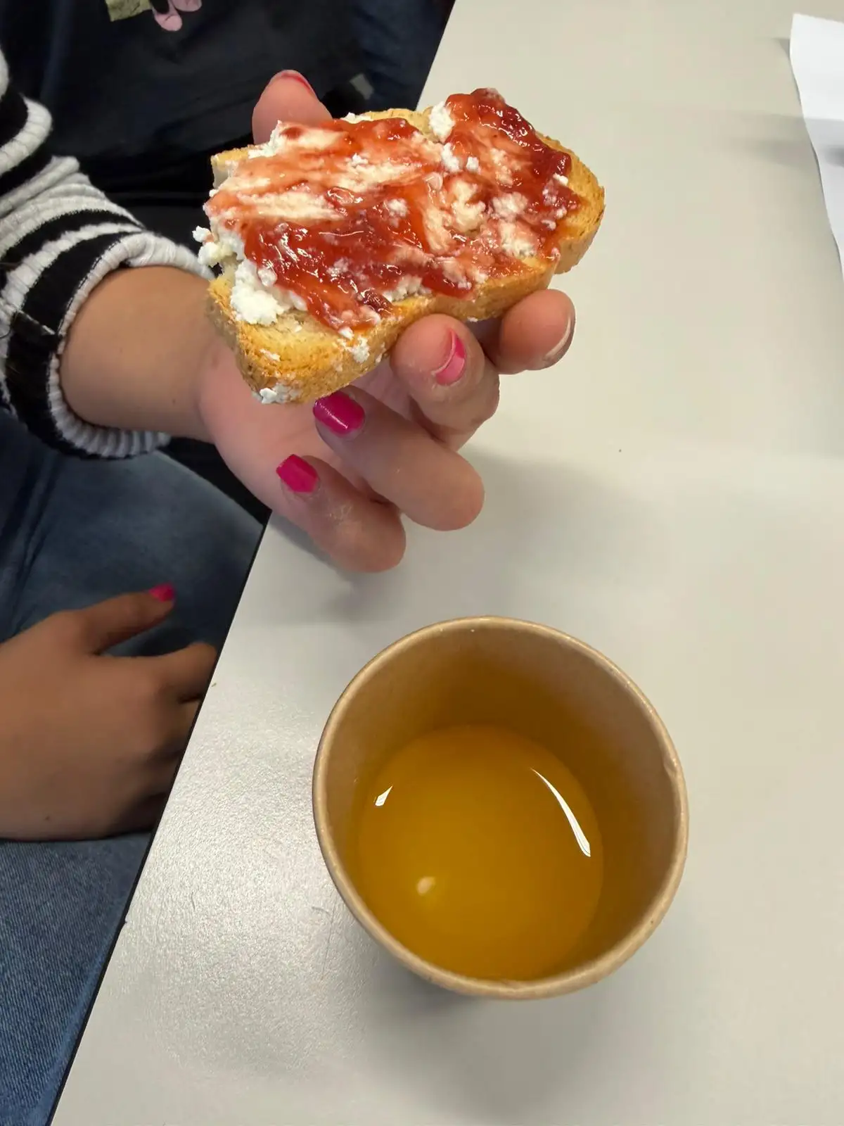 Un punto clave de esta actividad ha sido trabajar la receta y la seguridad y la gestión de las alergias. Durante todo el proceso, el alumnado ha estado muy consciente de los ingredientes utilizados: la harina aporta gluten, la mantequilla contiene lactosa, el tomate contiene fructosa y el huevo es un alérgeno directo. Se ha tenido un cuidado extremo para evitar contaminaciones cruzadas, asegurando que la cata sea una experiencia segura para todo el mundo y aprendiendo a leer con detenimiento las etiquetas de los productos.