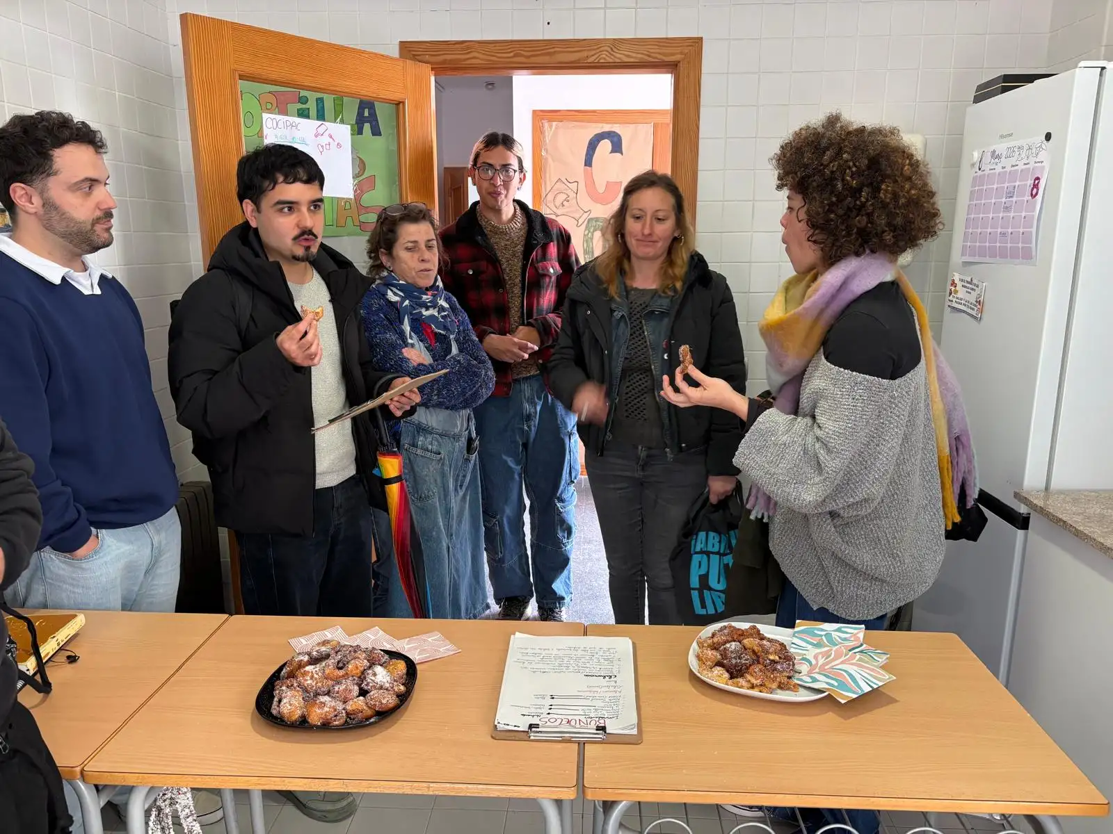 Con la libreta en mano y los sentidos muy despiertos, han evaluado cada aspecto del buñuelo: desde el dorado exterior y la textura crujiente, hasta la ligereza interior y el equilibrio de la dulzura. Ha sido fascinante observar como analizaban cada bocado con tanta seriosidad y profesionalidad, ofreciéndonos un feedback detallado que nos ayuda a crecer como cociner@s. Ha sido, sin duda, una sesión donde hemos mezclado aprendizaje, trabajo en equipo y el placer de compartir un producto muy hecho con un tribunal de excepción.