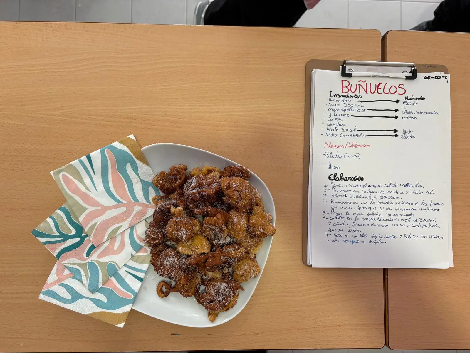 Por último, hoy las cocinas del PAC se han llenado de un aroma de aquellas que evocan a Fallas, tradición y hogar. No ha sido un día cualquiera; nos hemos puesto el delantal para enfrentarnos a un reto de repostería clásica: buñuelos de aire. Esta receta, que parece pura magia por su ligereza, requiere paciencia, buena mano y, sobre todo, mucha ilusión.