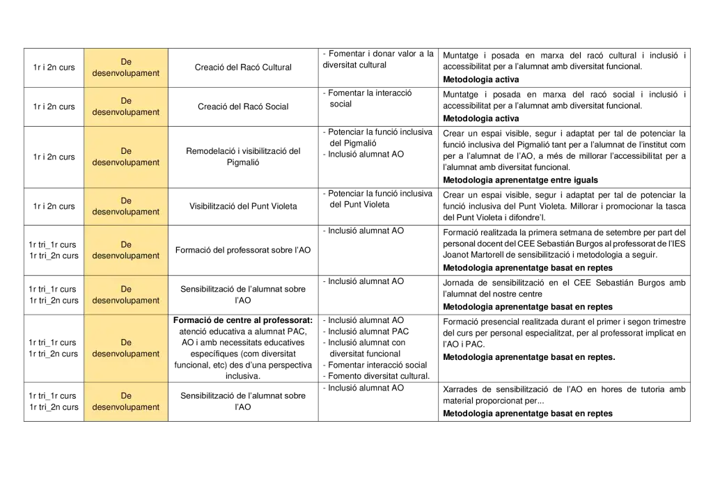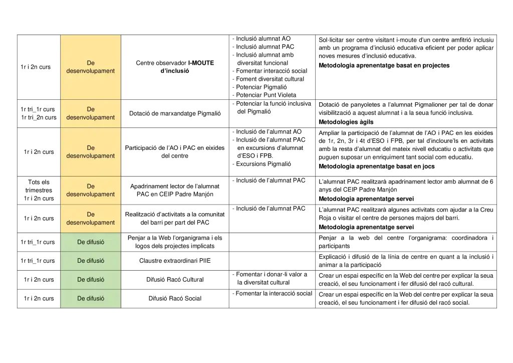 - La inclusió de l’alumnat del PAC (Programa d’aula compartida): el qual iniciarem per primera vegada el curs 23-24, i que és percebut per gran part de l’alumnat i el professorat com un focus de problemes, situació que es pretén canviar.