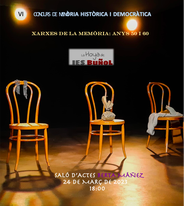El projecte de Memòria Històrica de l’IES La Hoya de Bunyol, que es desenvolupa des de l’any 2017, ha sigut reconegut amb el 1r premi per la Diputació de València a la convocatòria de premis a programes i activitats en l’àmbit de la memòria democràtica, desenrotllats per centres educatius de Secundària i Batxillerat de la província, per al curs