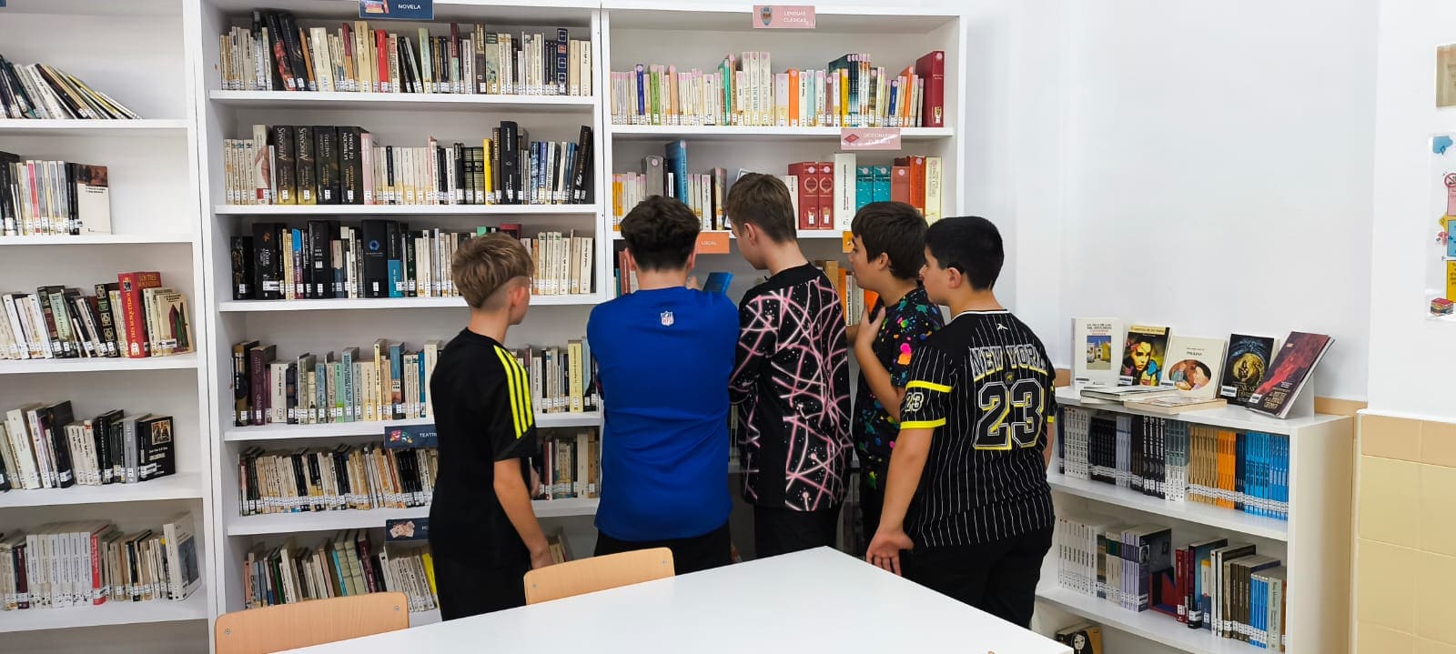 Se realizaron talleres con el alumnado de 1º ESO en los que, de la mano de la profesora Ana Aledo, conocieron un poco mejor el espacio de la biblioteca, su funcionamiento, distribución, etc., jugando a ser bibliotecarios/as por un rato.