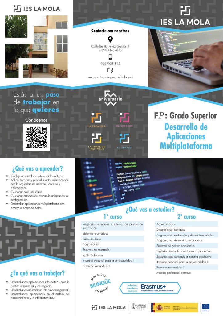 En nuestro centro, IES La Mola de Novelda, disponemos de varios ciclos de Formación Profesional en lo que se refiere a la familia de Informática, tal y como detallamos a continuación: