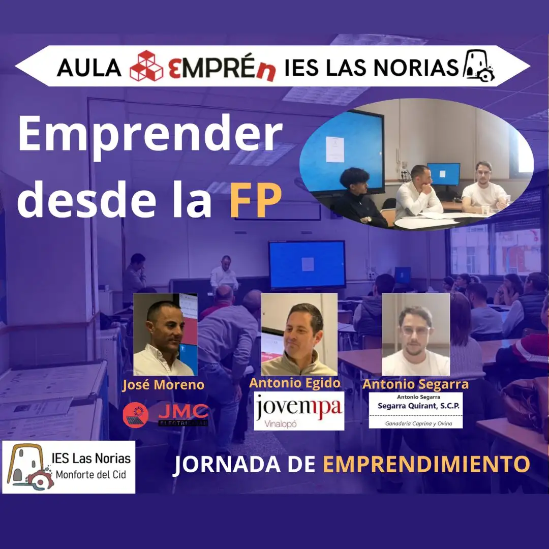 El passat 19 de desembre, l’IES  Las Norias va viure una jornada inspiradora amb bastant èxit entre l’alumnat. Les famílies professionals d’Energia  i Aigua i Agrària organitzem una trobada d’emprenedoria que va demostrar una cosa: la Formació Professional és la porta directa al món real i a l’emprenedoria.