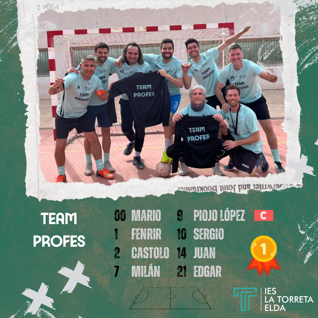 A lo largo del curso ofertamos una amplia variedad de actividades, tanto dentro como fuera del horario escolar. Sin ir más lejos, las propuestas de la concejalía de Elda a través del AMPA van desde campeonatos de fútbol sala, milla escolar, ajedrez, tenis de mesa, natación, pádel, cross escolar o tenis, que se realizan fuera del horario lectivo. En nuestro centro, actividades como la Spartan Race, torneos deportivos, salidas al medio natural, el Aula Ciclista o los Juegos Olímpicos son sólo algunas de las que ofrecemos a la comunidad educativa. Pero, sin duda, la actividad estrella de nuestro proyecto son los PATIOS ACTIVOS, en los que en su 1ª edición participaron más de 500 personas entre alumnado y profesorado. Se realizaron campeonatos de baloncesto, voleibol, just dance, fútbol sala, datchball y colpbol a lo largo de todo el curso, con sus correspondientes ceremonias de entrega de premios. Como ya hemos resaltado anteriormente, toda la comunidad educativa está implicada en nuestro proyecto PEAFS, y desde el punto de vista de los docentes es fundamental la idea de «Educar desde el ejemplo». Por ello, el TEAM PROFES es uno de los equipos participantes de cada torneo, ayudando a controlar desde dentro la promoción de valores y la gestión de conflictos.