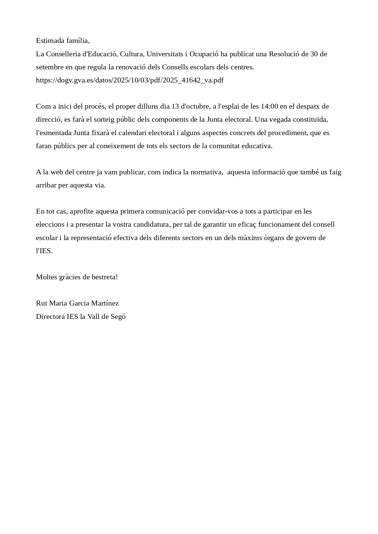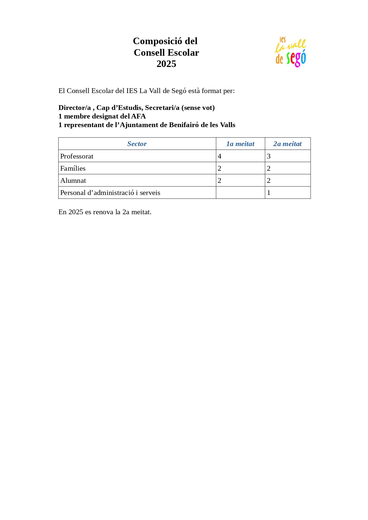 20/10/2025 Publicació dels censos en el tauló de l’entrada de la IES La Vall de Segó (Clica ací per a veure el cens del sector de les famílies)