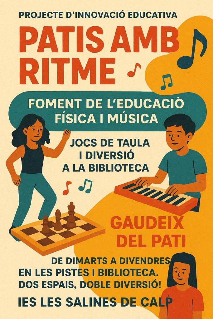 - Patis amb ritmeEl Projecte de Patis amb ritme continúa amb èxit i la batukada del nostre centre ja participa activament diferents dies per amenitzar amb ritme i diversió l’esplai a tot l’alumnat … Llegir més
